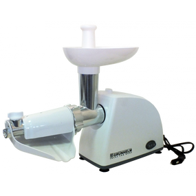Описание М'ясорубка електрична Grunhelm AMG140WJ, 1400 Вт. 2 решітки, з томато-соковижим., насадка для ковбас і кебе, реверс,