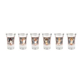 Фантастический набор из шести крепких стеклянных рюмок для крепкого алкоголя. На каждом стакане изображена привлекательная женщина с обольстительными формами в одежде, которая исчезает при наполнении рюмки и появляется снова после того, как рюмка ослабляется. Идеальный выбор для вечеринок и оригинального подарка. Объем – 35 мл