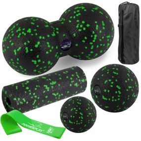 Набір для масажу та йоги PowerPlay PP_4093 EPP (3 м'ячики + валик масажер 15*5,3см.) Green + резинка 5,5 кг.