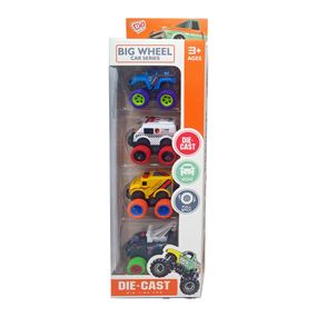 Характеристики Набор игрушечных машинок JM52243, 4 машинки в наборе, коробка 9,8*5,5*32,5см. Желто-синий