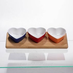 Характеристики Набор менажниц фарфоровых для закусок 3 (шт) по 100 (мл) менажницы в форме сердца на бамбуковой подставке TX001