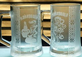 Описание Набор пивных бокалов 670 мл Кум и Кума с гравировкой Стеклянные кружки в украинском стиле подарок кумовьям