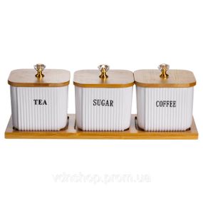 Набор фарфоровых квадратных банок для сыпучих на подставке 3 шт по 350 (мл) для чая кофе сахара SCT-643