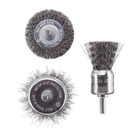 Набір складається з трьох щіток, спеціально розроблених для швидкого очищення та шліфування різних поверхонь: металу, цегли, каменю, дерева тощо. Ідеально підходять для використання з дрилями зі швидкістю обертання 4500 об/хв. Такі дротяні щітки забезпечують чудову якість зачищення навіть у важкодоступних місцях.
