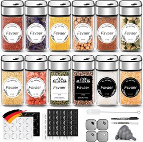 Отзывы и вопросы о - Набір з 12 баночок для спецій Fsvaer, скло та нержавіюча сталь, 120 мл, з кришкою на 3 режими, воронкою, наліпками та маркером