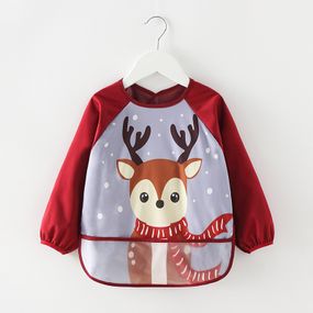 Отзывы и вопросы о - Нагрудник детский с рукавами для кормления или творчества 0-2 года Олень Красный