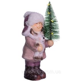 Новогодняя фигурка с подстветкой Девочка с елкой из фарфора 12×8×23 (см) новогодний декор для дома, квартиры, офиса CR-5-3