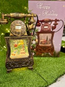 Погрузитесь в атмосферу волшебства с этим уникальным новогодним фонарем в виде старинного телефона. Внутри фонаря – миниатюрная сцена с Санта-Клаусом, окруженная снежинками и огоньками, создающими настоящее праздничное настроение.