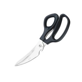 Кухонні ножиці серії SUPERCORT мають міцні леза з нержавіючої сталі 18/10. Завдяки фірмовому заточуванню, аксесуар легко справляється з різкою навіть щільних предметів. Пластикові чорні ручки зручні у використанні та не ковзають. Багатофункціональність пристрою забезпечують додаткові зубчики для розколювання горіхів. Ножиці TRAMONTINA SUPERCORT 25920/109 довжиною 23 см стануть незамінним помічником на вашій кухні.