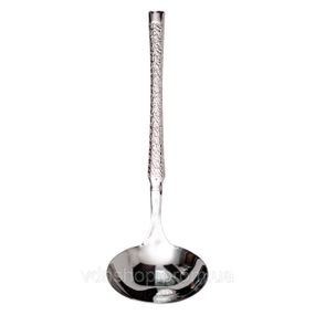 Сервировочный половник — практичный и элегантный аксессуар, незаменимый при подаче первых блюд, супов, бульонов, рагу и соусов. Он идеально подходит как для ежедневного использования, так и для праздничной сервировки в ресторанах, кафе, на банкетах, фуршетах и семейных застольях. Половник выполнен из высококачественной нержавеющей стали, устойчивой к коррозии, механическим повреждениям и перепадам температур. Благодаря цельнолитой конструкции он прочен и долговечен, легко очищается и не впитывает запахи. Особенность дизайна — эффектная молотковая текстура, которая не только придаёт изделию стильный внешний вид, но и предотвращает скольжение в руке, даже если она мокрая. Основные характеристики половника: Длина: 24 см; Диаметр рабочей поверхности: 7.5 см; Материал: нержавеющая сталь. Оптимальные размеры чаши половника позволяют удобно и аккуратно наливать жидкие блюда в тарелки, не проливая содержимое. Такой аксессуар сделает подачу еды эстетичной и профессиональной, подчёркивая внимание к деталям. Сервировочный половник — отличный выбор для тех, кто ценит удобство, надёжность и элегантность на кухне и за столом.