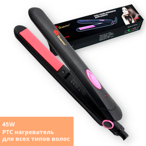 | Дополнительные характеристики | • предназначена для всех типов волос<br>• PTC нагреватель, с быстрым нагревом<br>• удобная не нагревающаяся ручка<br>• не повреждает и не пересушивает волосы<br>• рабочая поверхность равномерно и быстро прогревается<br>• долго сохраняет оптимальную заданную температуру |