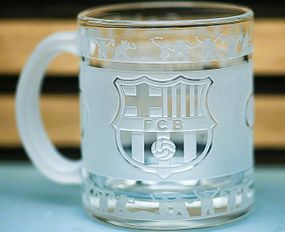 Характеристики Подарочная стеклянная чашка для чая и кофе 320 мл с гравировкой лого футбольного клуба ФК Барселона круговая