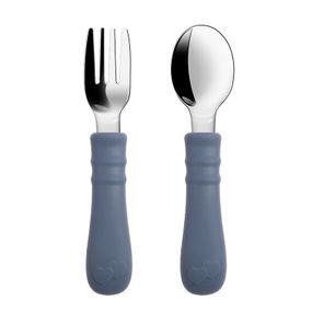Характеристики Приборы металлические детские ложка и вилка с силиконовыми ручками Синие