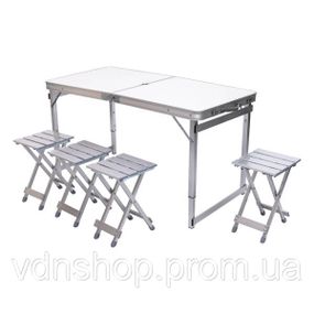 Раскладной стол + 4 стула кемпинговый набор для пикника, рыбалки, отдыха, туризма Белый JY-12061W