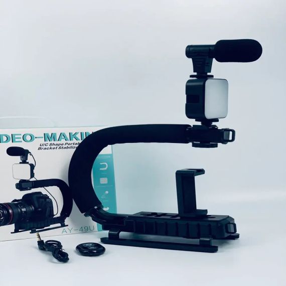 Ручка стабилизатор AY-49U для видеокамер фотоаппаратов Uобразный кронштейн для телефона с микрофоном вспышкой