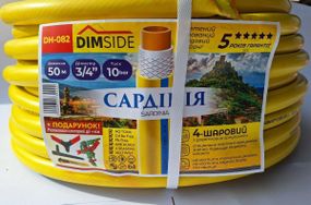 Отзывы и вопросы о - Шланг DIMSIDE садовий "САРДІНІЯ" 3/4" 50м жовтий з синьою лінією
