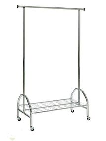 Габаритные размеры (Д х Ш х В): 120 х 50 х 165 см Материал: сталь хромированная, диаметр трубы 32 мм 4 колеса Максимальная нагрузка: 60 кг Способ упаковки: картонная коробка, размер коробки: (Д х Ш х Г) 168,5 х 52 х 7 см