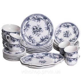 Описание Столовый набор посуды тарелок и чашек 32 предмета на 6 персон Vintage Elegant фарфоровый, обеденный столовый сервиз тарелок Синий