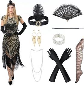 Отзывы Платье в стиле 20-х Гетсби с пайетками бахромой перчатками женский ретро образ комплект для карнавала Хэллоуин
