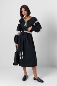 Описание Сукня зі вставками макраме на поясі та рукавах - чорний цвет, S (є розміри)