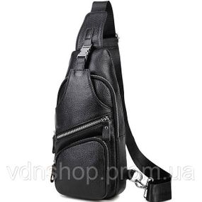 Сумка-слинг мужская на плечо 17х32х7, кожаный нагрудной рюкзак для города TIDING BAG MK16094 черный