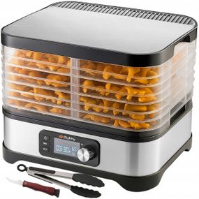 Универсальный дегидратор RUHHY мощностью 400 Вт позволяет сушить грибы, фрукты, овощи и зелень. Он оснащен пятью лотками общей емкостью 10 литров, регулировкой температуры (35–70 °C) и четким ЖК-дисплеем с 72-часовым таймером. В комплект также входят лотки для жидкости, сетчатые сетки и антипригарные коврики для максимального удобства. Энергоэффективный и изготовленный из безопасных материалов, не содержащих бисфенол А, он идеально подходит для вашей домашней кладовой круглый год.Преимущества сушилки для грибов RUHHY: