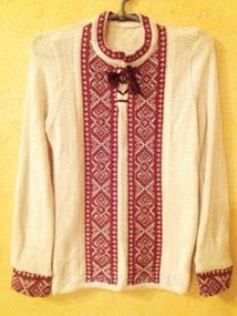 Свитер для мальчика,вязаный,выбеленый лен, размеры 116-158 Обережная вышивка исполнена в виде ромба – знака Земли и плодородия в комбинации со знаками Воды. Ромб – безусловный оберег. Это знак земледельцев, символ полей на которых рождается зерно, символ счастливого потомства. Красный цвет обозначает радость, жизнелюбие, солнце, а также любовь. Кроме того, наши предки верили, что именно красные нити являются источником позитивной энергии. Детские вышиванки украшаются преимущественно красными и синими нитями. Белый цвет символизирует невинность, чистоту, непорочность Синий цвет считается самым мощным оберегом, он символизирует небо и воду, очищение, избавления от болезней и душевное спокойствие. Традиционно синий цвет украшает мужские рубашки, так как считается, что именно мужчина часто попадает в опасные ситуации, и именно ему нужна защита и оберег.