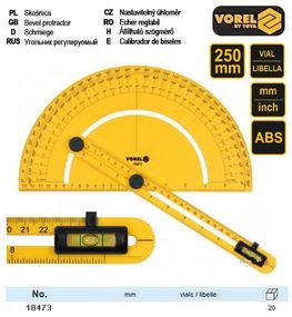 Характеристики Транспортир шкала 0-180º уровень l=250 мм Польша VOREL-18473