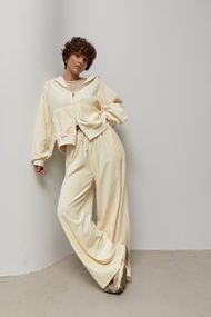 Характеристики Велюровий спортивний костюм із худі та прямими штанами - кремовий цвет, M (є розміри)