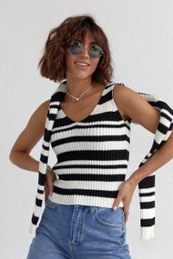 Описание В'язаний комплект з майки та укороченого джемпера - білий з чорним цвет, S (є розміри)