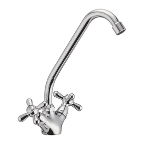 Двуручковый смеситель для кухни Haiba DOMINOX 271 (HB0077) монтируется под одно отверстие (мойка, столешница, подоконник) на шпильку. Изготовлен из латуни (сплава цинка, меди и др. металлов) обладающей высокой прочностью, износостойкостью и являющейся одним из лучших материалов для смесителей. Покрытие - хром, защищающий от коррозии. Цвет стальной.